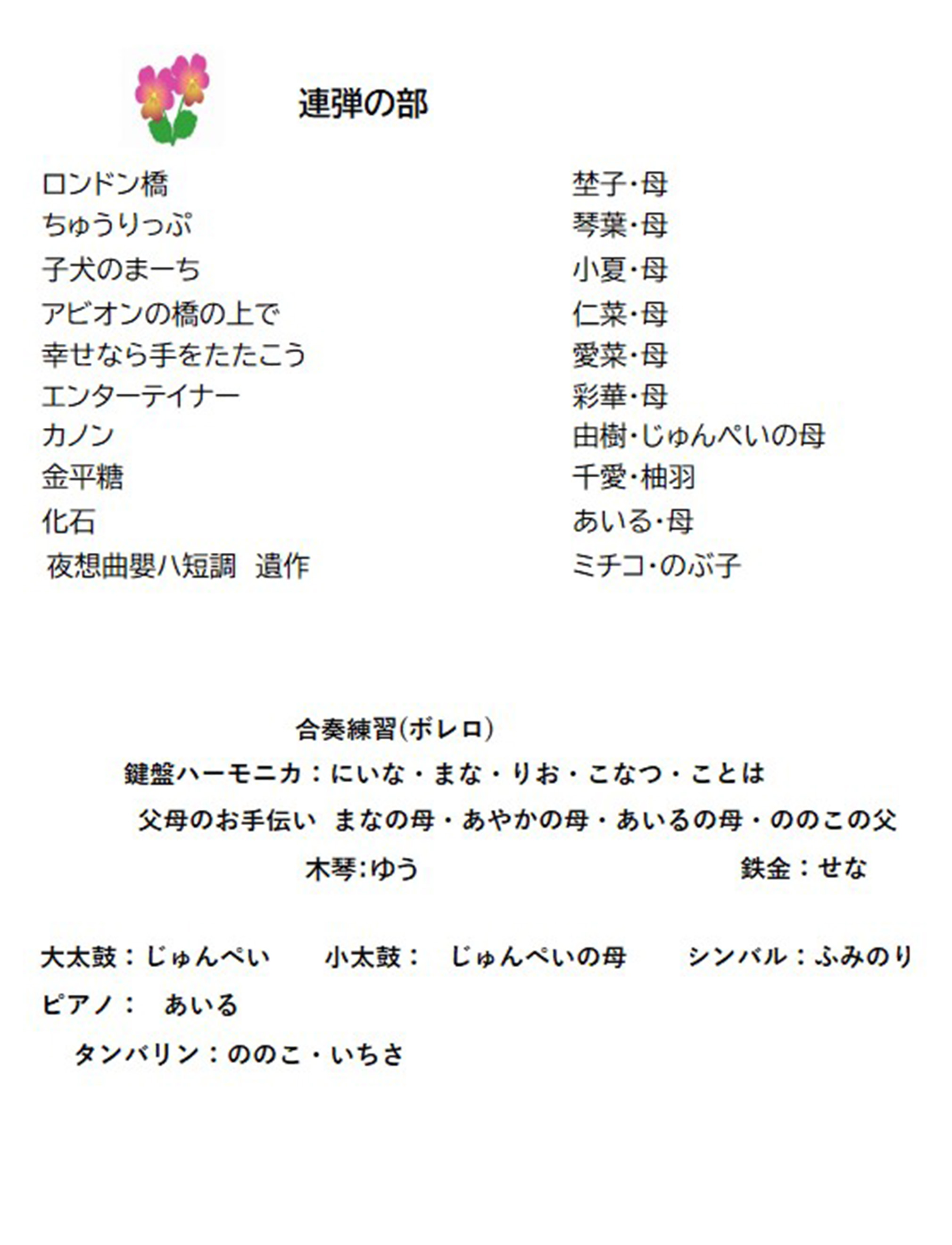 今回はソロ・リレー、親子アンサンブルなど、多彩なプログラムとなりました。
